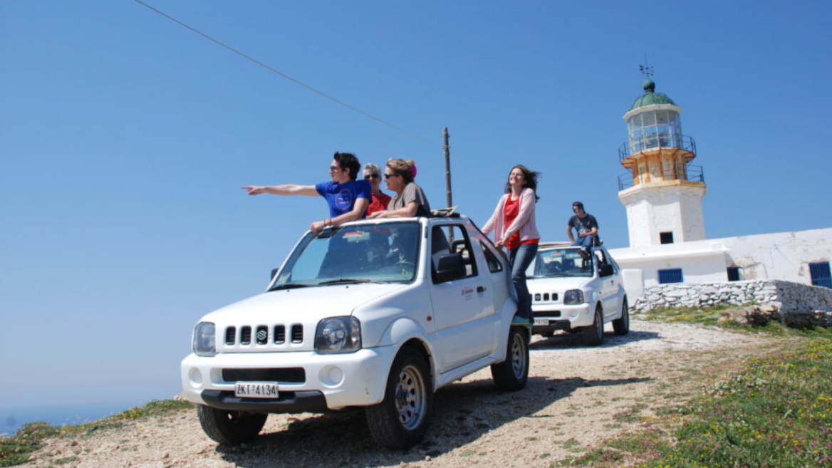 Θα επισκεφθείτε τη βόρεια πλευρά του νησιού με τον χαρακτηριστικό φάρο και θα απολαύσετε τη φανταστική θέα στα γύρω νησιά, τις υψηλότερες περιοχές του νησιού, τη λίμνη του Μαραθιού και την ύπαιθρο γύρω από το παραδοσιακό χωριό Άνω Μερά και το παλιό ενετικό κάστρο Παλιόκαστρο. Αυτό είναι το πιο διασκεδαστικό κομμάτι της εμπειρίας: οδηγώντας στο λιγότερο αναπτυγμένο τουριστικά κομμάτι της Μυκόνου, που σπάνια βλέπουν οι τουρίστες. Εδώ θα κινηθείτε εκτός δρόμου σε χωματόδρομους, όπου τα συνηθισμένα αυτοκίνητα δεν θα τολμούσαν (ή δεν θα μπορούσαν) να φτάσουν. Η εμπειρία να αναπηδάς πάνω στα χαλίκια και τη σκόνη είναι η ουσία της οδήγησης εκτός δρόμου! Είναι μια εμπειρία γεμάτη αδρεναλίνη και ένταση που δεν θα ξεχάσετε ποτέ. Οδηγείστε το 4x4 όχημά σου στα όριά του μέχρι τον Άγιο Σώστη και την παραλία Μερχιά.