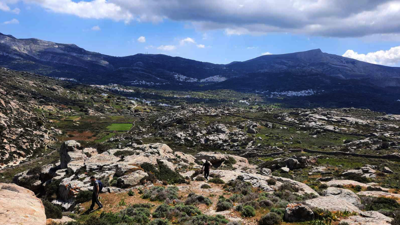 Upon reaching Ano Potamia, take a refreshing pause at the village's water fountain. The uphill portion of the hike leads you to Apano Kastro and the remnants of a Venetian citadel, treating you to a breathtaking panoramic view: the Tragea valley stretching beneath; the Aegean sea's limitless blue merging with the horizon; and lunar-like landscapes punctuated by villages nestled in verdant surroundings.